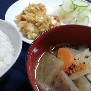 おつまみセット、唐揚げ&豚汁定食は、各800円予定