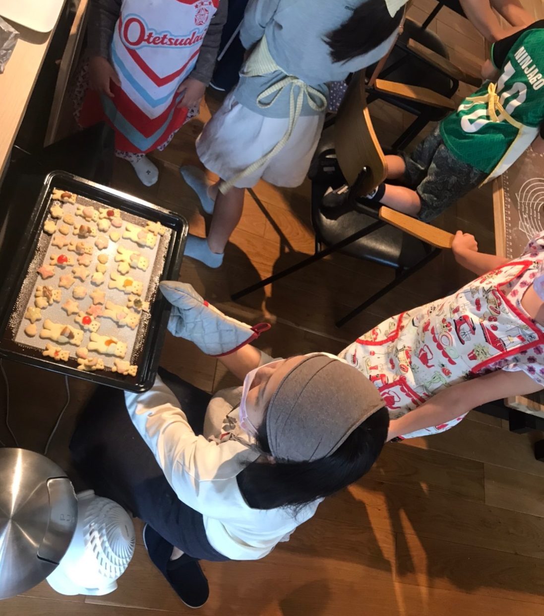 4人とも待ちきれなくて、オーブンの前から離れません(笑)