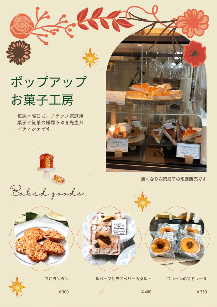 フランス家庭焼菓子講師鎌塚みゆき先生のお菓子をぜひご堪能下さい。