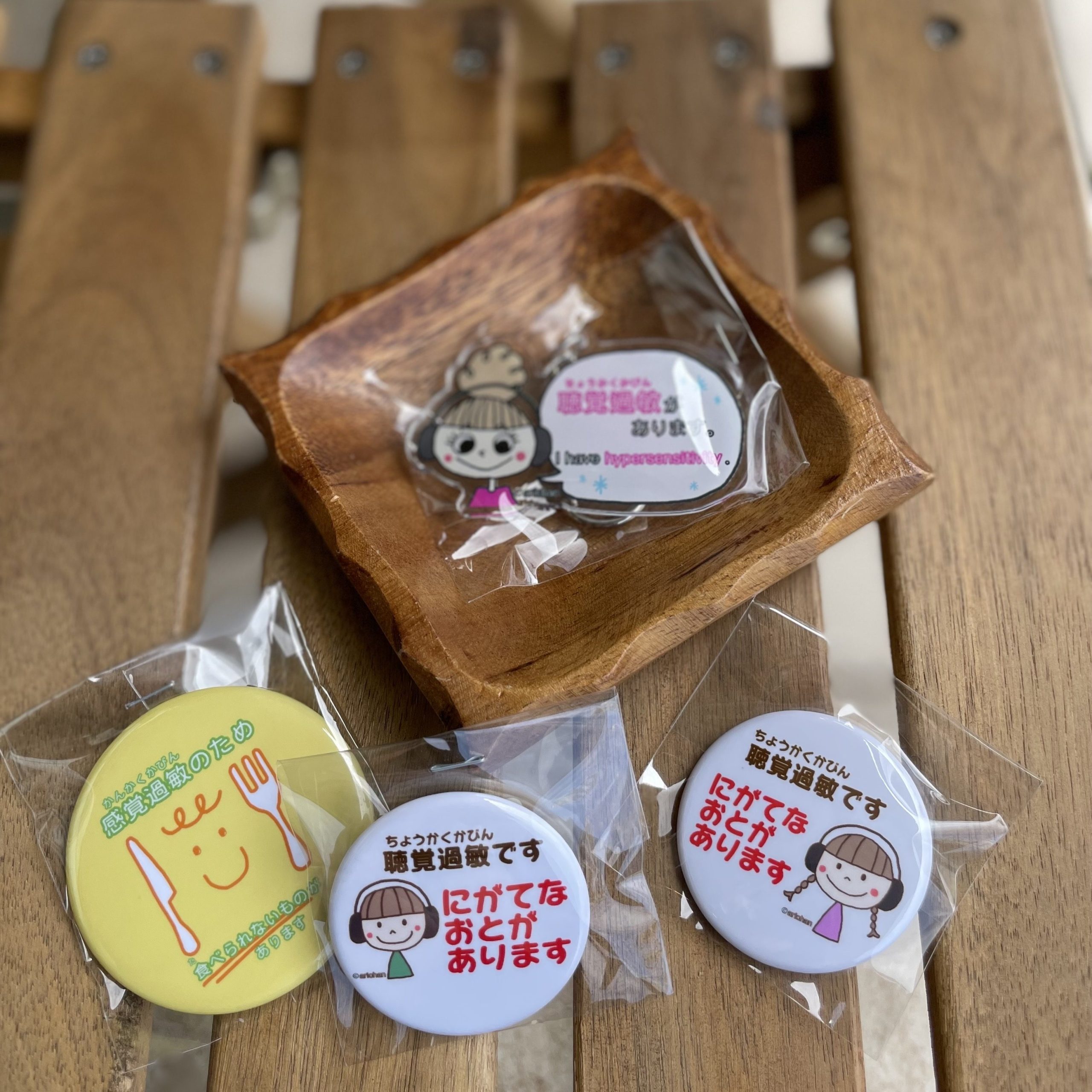 感覚過敏の人のための缶バッチも制作されています。