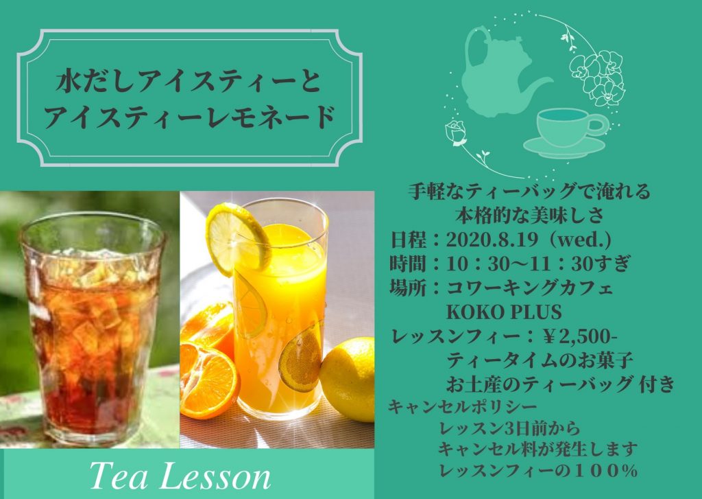 2020年8月19日 / 最終更新日時 : 2020年10月11日 kokoplus 鎌塚みゆき先生 【焼菓子&紅茶研究家 鎌塚みゆき先生】水だしアイスティーとアイスティーレモネード お問い合わせはこちら お教室風景 2020.08.19 この投稿をInstagramで見る 暑い日が続いています。 レモネードが流行っているみたいですね。 #レモネードアイスティー を作ってみました。 市販品の#レモネード を使うのですぐに出来て、簡単に2層に分かれて作れます。 ポイントはたっぷりの氷と紅茶を注ぎ入れるときは氷に当てるように注ぐこと。これだけです。 . . #おうちで紅茶 #お茶の時間 #おうちティータイム #紅茶のある暮らし #紅茶好きと繋がりたい #teatime #tea #thé 焼菓子&紅茶研究家 鎌塚みゆき(@petit.a.petit2004)がシェアした投稿 – 2020年 8月月19日午後8時01分PDT この投稿をInstagramで見る こちらも#レモネードアイスティー です。 濃い目に入れた温かい紅茶に蜂蜜を溶かし、そこにギュッとレモン果汁を絞り入れ、たっぷり氷の入ったグラスに注ぎ入れます。 昨日のレモネードアイスティー は超お手軽でしたがこちらは蜂蜜とレモンを加える一手間だけでさらに美味しくできます。 . . #おうちで紅茶 #お茶の時間 #おうちティータイム #紅茶のある暮らし #紅茶好きと繋がりたい #teatime #tea #thé #pausethe #restechezmoi 焼菓子&紅茶研究家 鎌塚みゆき(@petit.a.petit2004)がシェアした投稿 – 2020年 8月月20日午後10時17分PDT