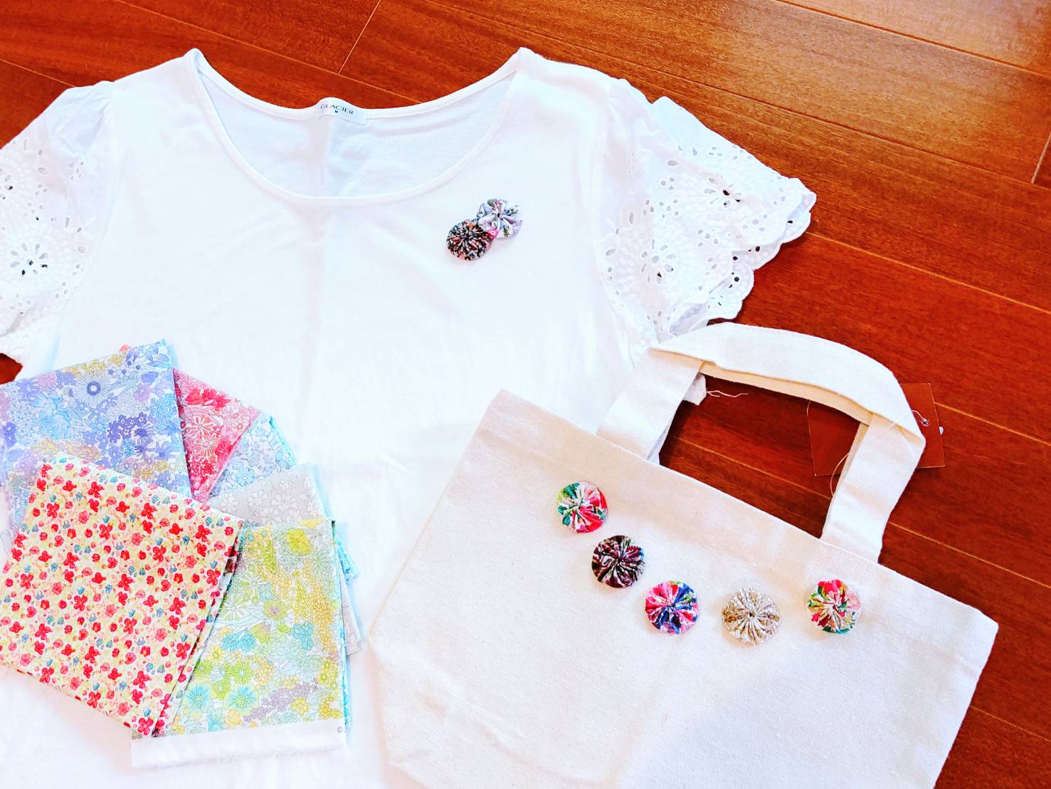 15種類程ご用意するリバティ生地からお好きな物をお選び頂き3つヨーヨーキルトをお作り頂けます(追加2つ毎に100円)。