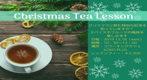 毎月第3水曜日は「Tea time lesson」 今回のレッスンは【クリスマスに飲む特別な紅茶】【紅茶教室】