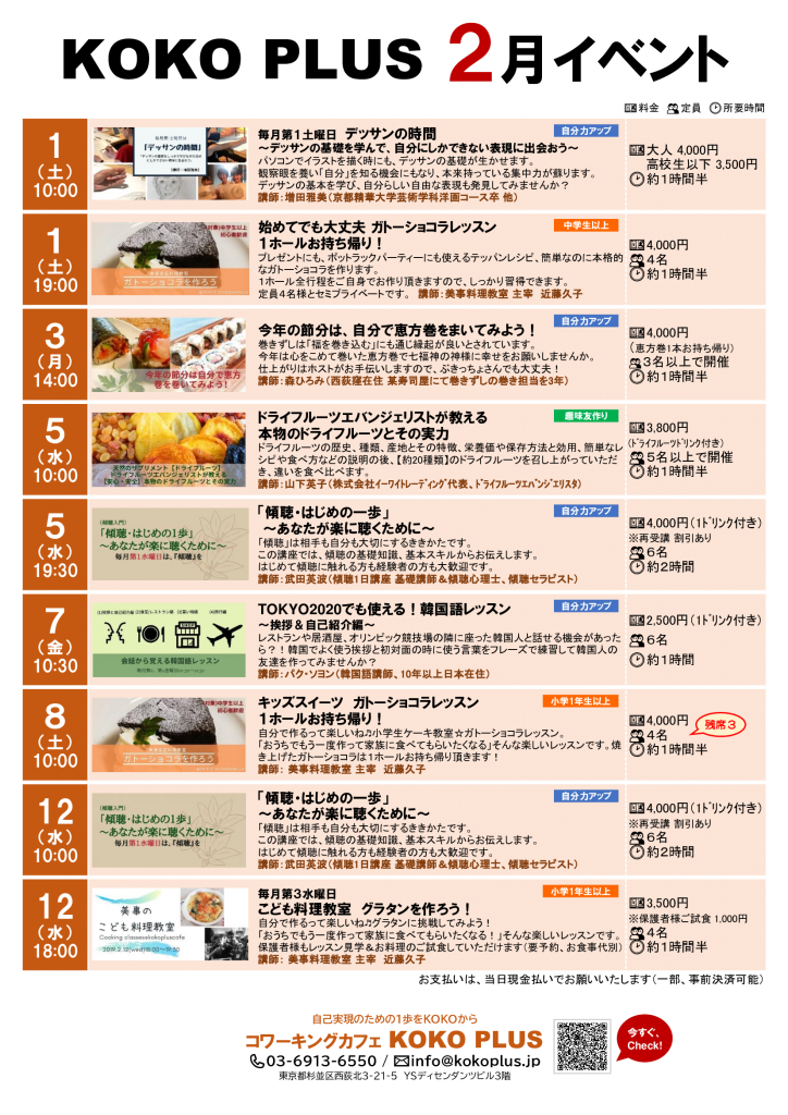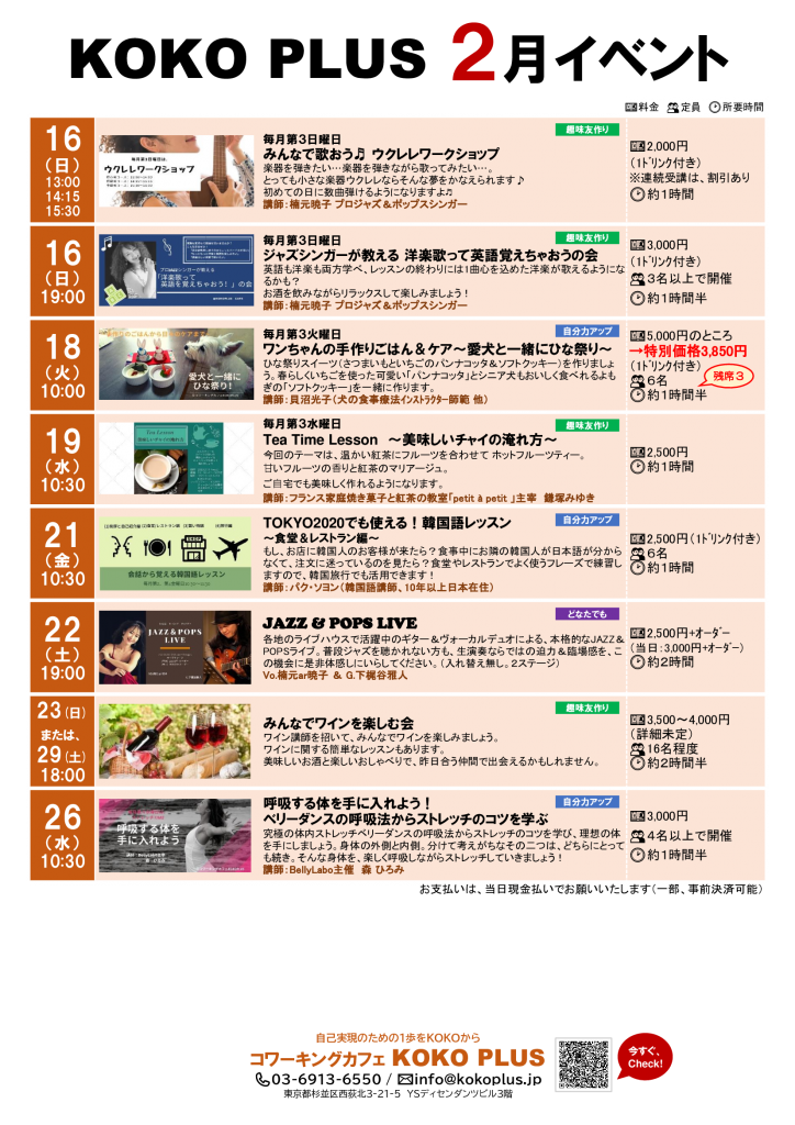 2/16(日)16:50~17:50 今回は中級レッスンのみ