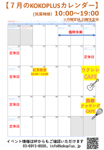 【7月の営業のお知らせ】