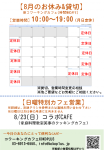 7月のコワーキングカフェ及び日曜カフェ営業日のお知らせ
