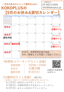 10月のコワーキングカフェ及び日曜カフェ営業日のお知らせ