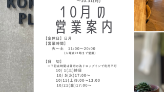 【10月の営業のお知らせ】