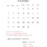 今月は夏季休暇を頂く都合にて、稼働日が少なくなります。