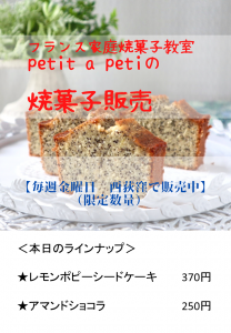 【今週も木曜日の午後から販売です】フランス焼き菓子講師鎌塚みゆき先生