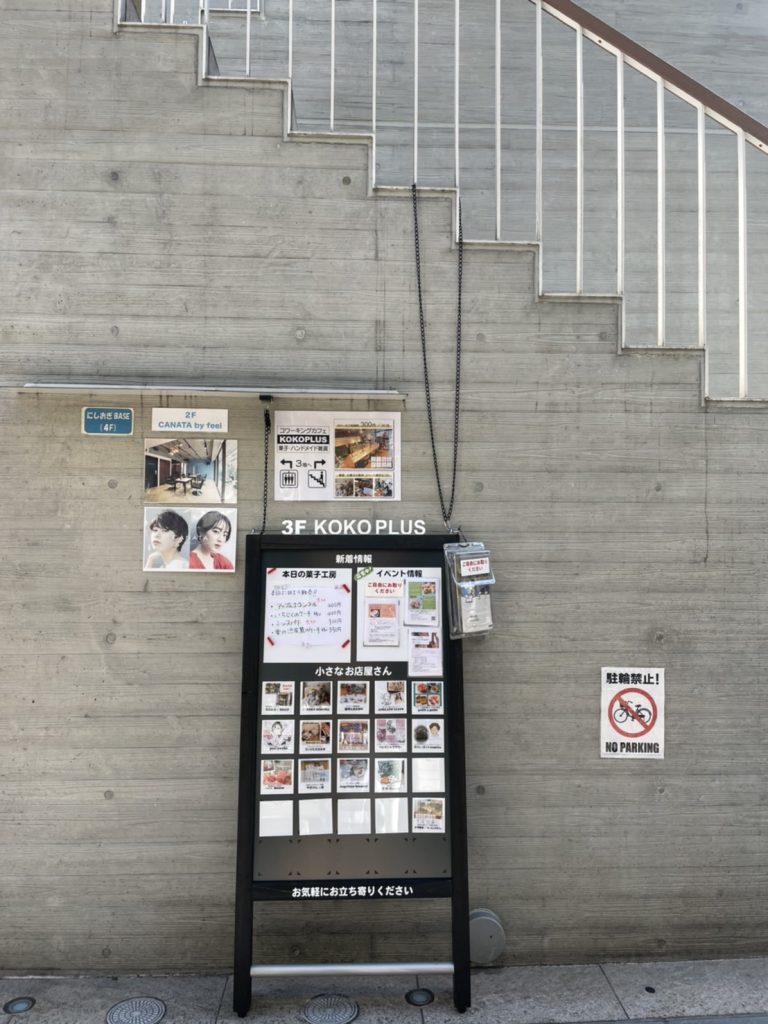 1階のビルの中央部分の壁。ちょうど掲示板ぽっく作っていただいている場所に。