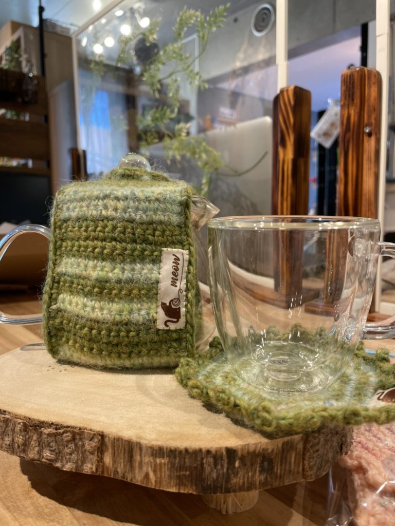 ティーコージーは当店で使用している100円ショップダイソーのティーポット(500円)にちょうどいいサイズに編んでいただいた形もすべて完全にオリジナルのものです。