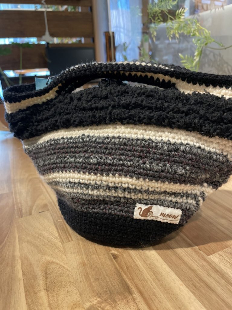 冬のプチトートバックは、これからの季節にちょうどいい暖かそうな色合いの毛糸で丁寧に編み込まれています。