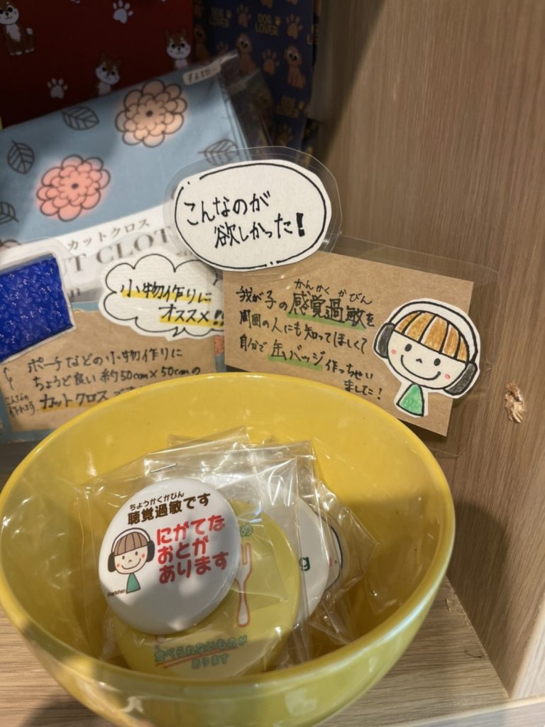 その他、「感覚過敏をもっとたくさんの人に知ってもらいたい」という想いから製作された、オリジナルの缶バッチもご購入いただけます。